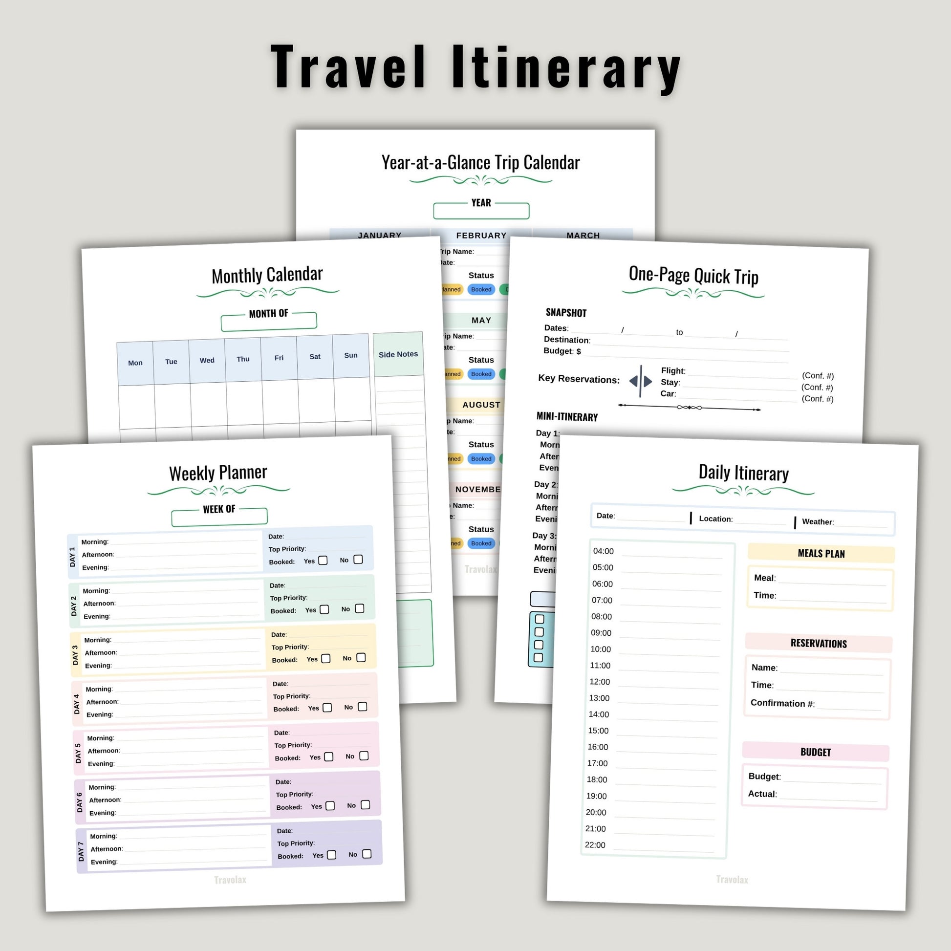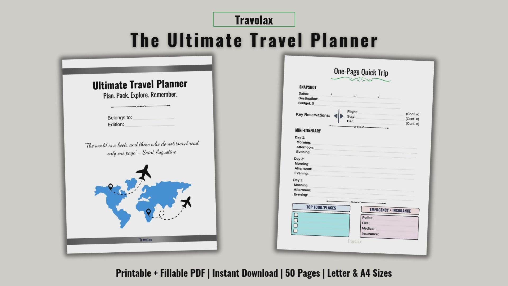 Unlock seamless travel planning with the Travolax Ultimate Travel Planner—your digital organizer for dream vacations, family adventures, and business trips! Instantly downloadable, printable, and fillable, this planner is designed to help you plot every step, stay organized, and cherish every memory.